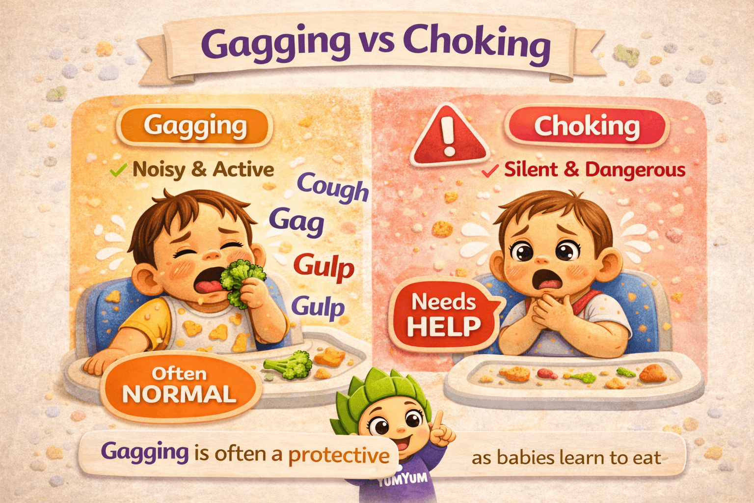 Gagging is often a normal part of learning to eat. It can look alarming, but in many cases it is a protective reflex, not an emergency.